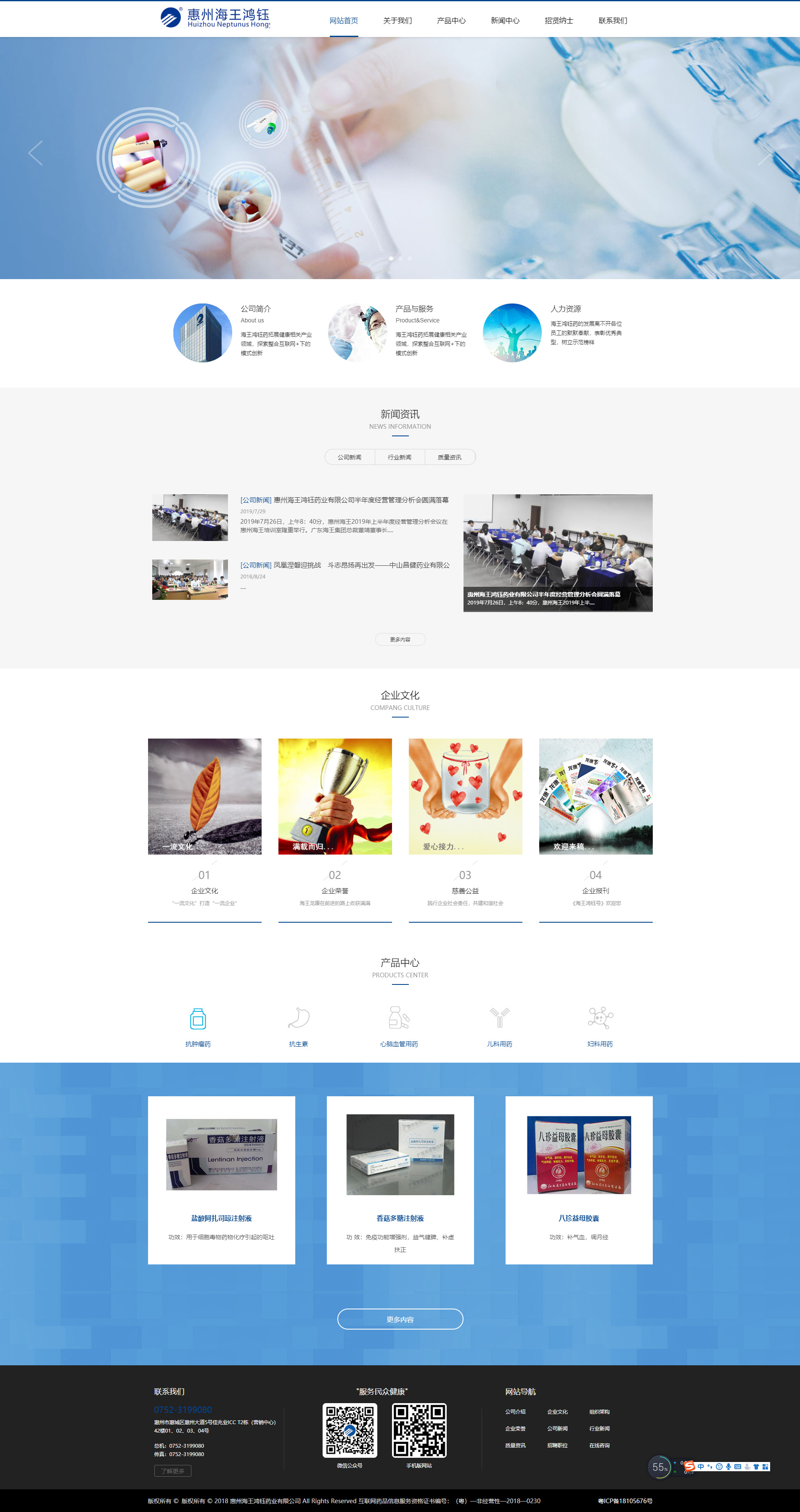 惠州海王鴻鈺藥業(原惠州市鴻鈺藥業)有限公司成立于2013年6月,是惠州市首批通過新版GSP認證的藥品企業,于2013年11月通過國家級GSP認證。 2017年7月鴻鈺藥業與廣東海王龍康簽約建
